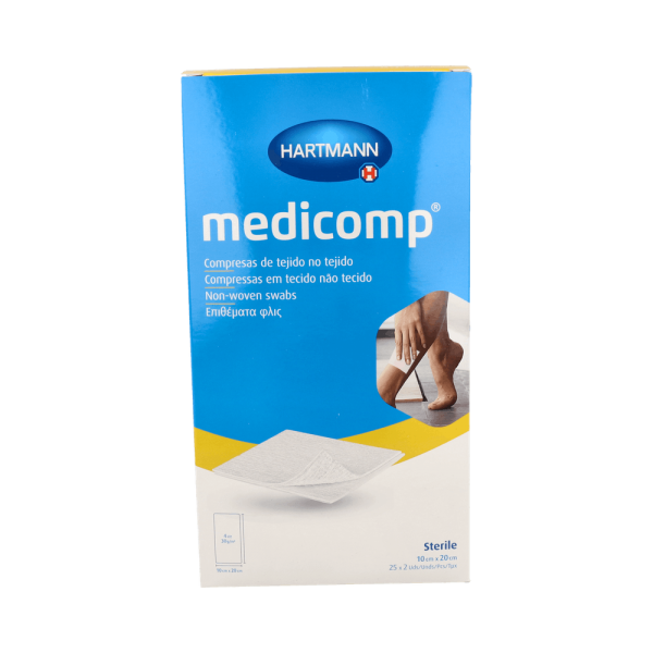 Medicomp comprensas estériles con una fácil solución a la hora de tratar heridas o cortes que generen hemorragia intensa. Son altamente absorbentes y resistentes, además poseen un tacto suave y agradable que no daña la piel.