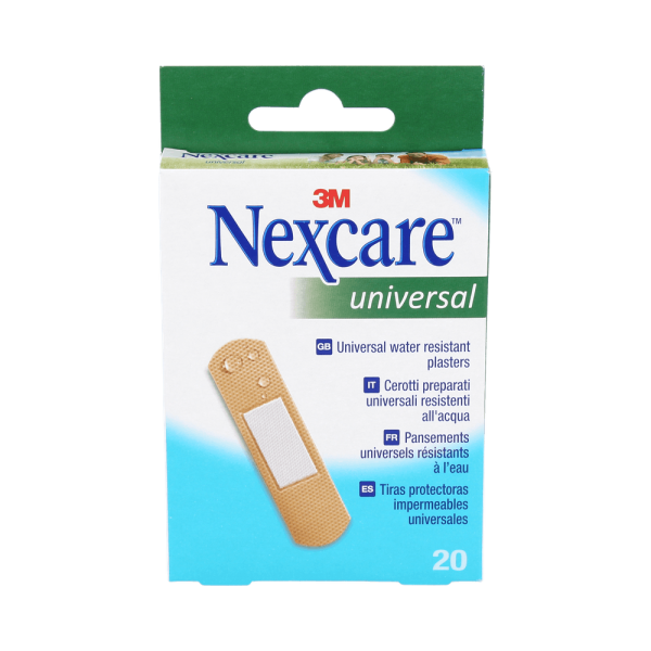 Nexcare® Universal son unos prácticos apósitos adhesivos impermeables y universales, para toda la familia. De larga duración, son resistentes al agua y se adhieren a la piel húmeda. Poseen un adhesivo muy resistente que no irrita la piel y tiene una gasa muy absorbente para proteger cómo se merecen los cortes superficiales, las heridas y los pequeños cortes.