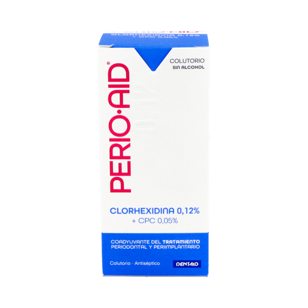 Perio-Aid Tratamiento colutorio 0,12% clorhexidina 150ml es un antiséptico bucal especialmente indicado para mantener nuestras encías y dientes limpias y protegidas. Con una composición a base de Clorhexidina y cloruro de cetilpiridinio, Perio-Aid colutorio mantiene las encías y dientes sanos, evitando las enfermedades periodontales y periimplantarias.