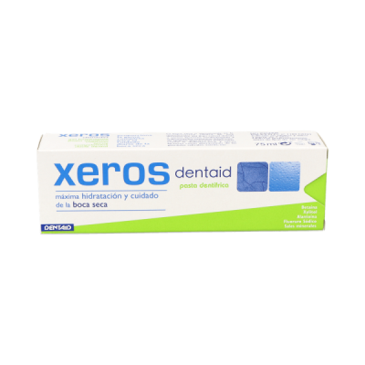 Xeros Dentaid Pasta Dentífrica 75ml es un dentífrico especialmente diseñado para reducir el malestar y recuperar la hidratación que una boca sana y limpia necesita. De uso tópico, ayuda a lubricar toda la boca, calmar la sensación de ardor y eliminar con progresión la aparición de sequedades. Favorece la remineralización del esmalte y ayuda a prevenir la aparición de caries.Además, está enriquecido con betaína, xylitol, fluoruro sódico y alantoína, ideal para prevenir irritaciones y garantizar una humectación de larga duración.