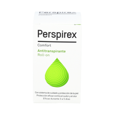 Perspirex Comfort Antitranspirante Roll On 20ml es un desodorante antitranspirante para pieles delicadas que ofrece un elevado control de la sudoración en axilas hasta 5 días después de su aplicación.Su fórmula ha sido diseñada expresamente para su uso en pieles con mayor reactividad, por lo que incorpora CPX skin caresystem, un sistema que minimiza la irritación y ofrece mayor confort a la piel.Indicado para adultos.