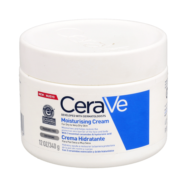 Cerave® Crema Hidratante 340ml es una crema de textura ligera y no grasa, diseñada para hidratar y reparar la barrera protectora de la piel seca o muy seca de rostro y cuerpo. Su fórmula está desarrollada por dermatólogos y contiene 3 ceramidas esenciales, ácido hialurónico y niacinamida. Esta combinación, junto a la tecnología MVE®, proporciona una hidratación prolongada durante todo el día, un efecto calmante sobre la dermis y contribuye a reparar la barrera cutánea de la piel. Además, al no contener perfumes, es apta para el uso en pieles sensibles.