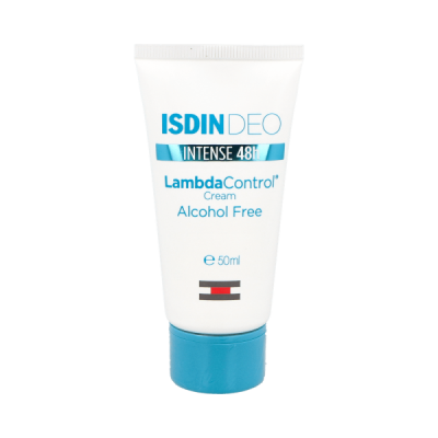 Lambda® Control desodorante en crema de Isdin® es unacrema antitranspirante especialmente formulada paramantener una protección eficaz a lo largo del día. Su fórmula ha sido testada bajo los más estrictos controles dermatológicos. Esta crema desodorante posee clorhidróxido de aluminio y triclosán, que actúan eliminando los gérmenes que causan el mal olor corporal. También tienen un efecto inhibidor sobre diversos microorganismos.