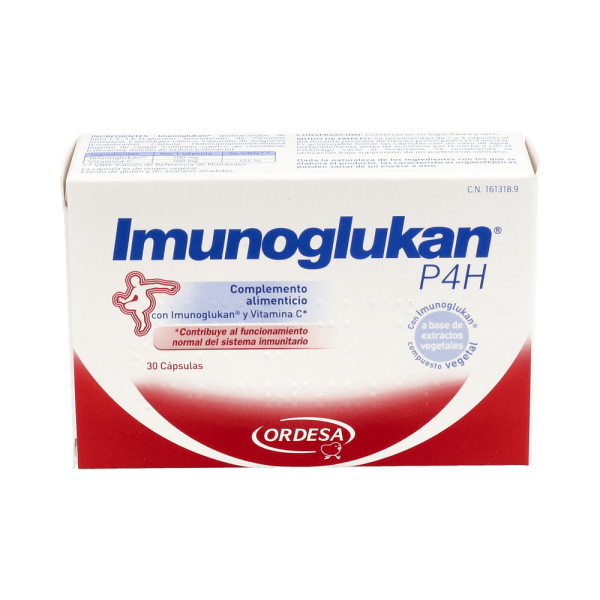 Imunoglukan P4H 30caps es un complemento alimenticio que ayuda al correcto funcionamiento de las defensas naturales. Formulado con Imunoglukan una sustancia de origen natural y Vitamina C, un antioxidante que ayuda a reducir los radicales libres. Está especialmente recomendado en épocas de cambio donde es más necesario mantener las defensas.Apto para adultos y niños/as a partir de 12 años.