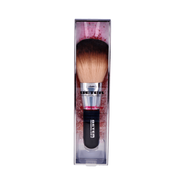 Beter brocha pelo sintético es un accesorio de textura suave, con gran densidad y en forma de abanico, que facilitará la aplicación de tus polvos de maquillaje favoritos.